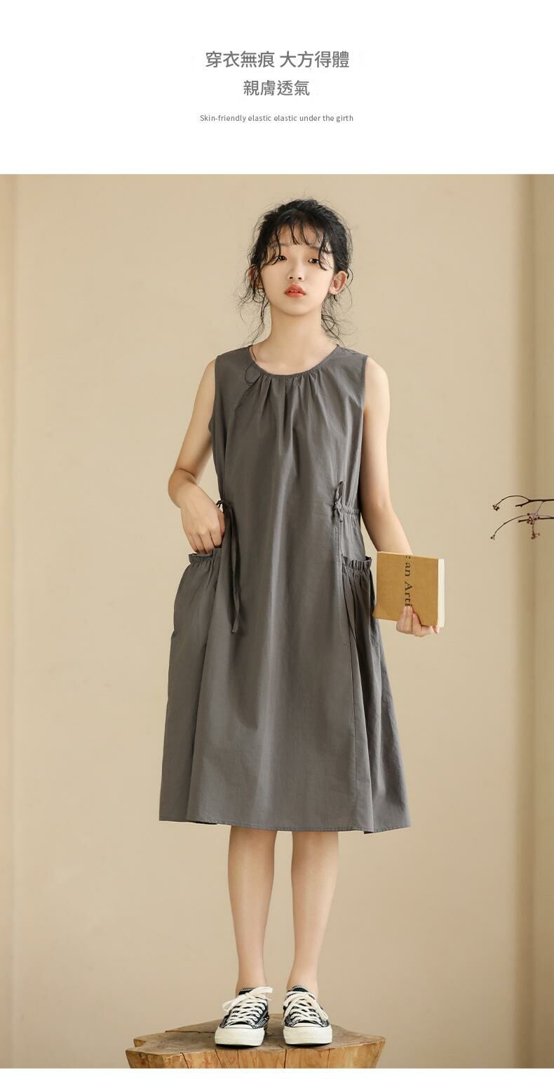 簡約無袖的設計,賦予這款洋裝清冷氣質